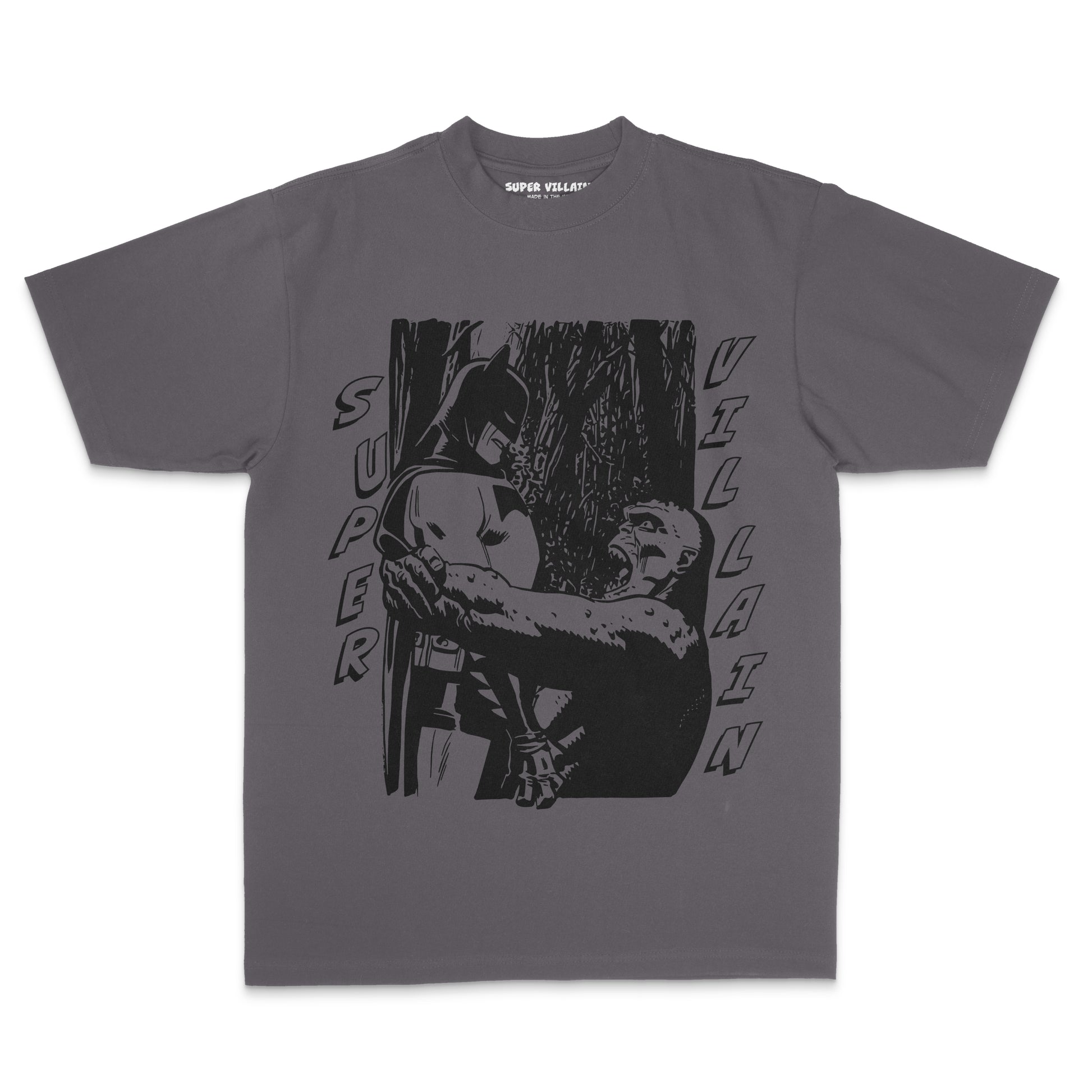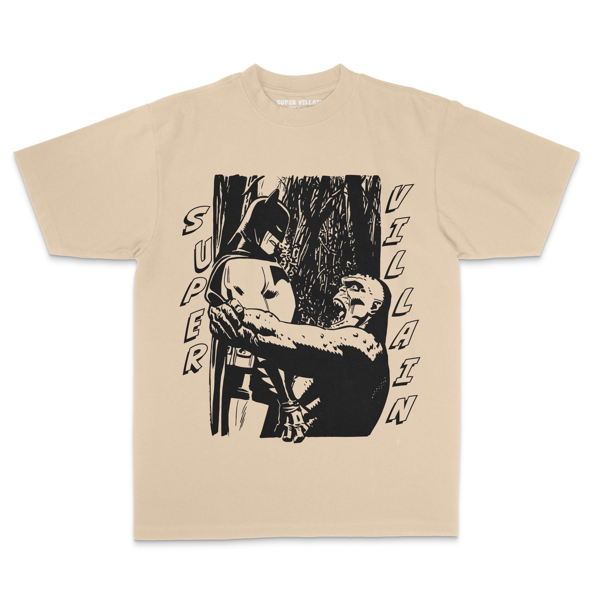 Killer Croc vs The Bat tee delivers bold graphic storytelling on premium cream cotton. The front features an intense black screen-printed battle scene between Batman and his reptilian nemesis, while the back showcases a striking yellow bat logo with "THE FIGHT" emblazoned above in authentic boxing promotion typography. This collector's piece merges comic book drama with vintage sports aesthetic, perfect for fans who appreciate detailed artwork and classic villain matchups. Expertly printed for lasting durability and color retention.